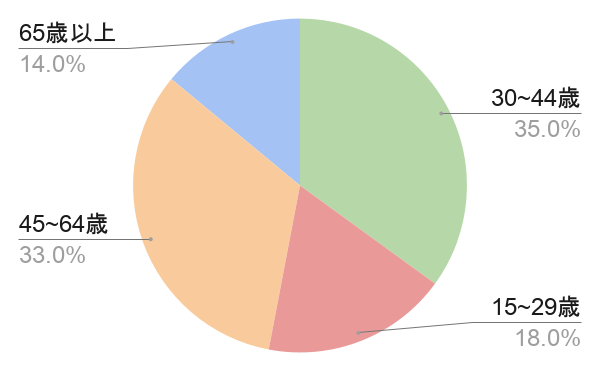 2026年3月は、30〜44歳が35%、45〜64歳が33%と、働き盛りの世代が全体の約7割を占める結果となり、15〜29歳が18%、65歳以上が14%と、若年層・高齢層にも幅広くご来院いただきました。